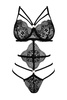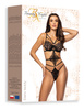The stunning Elaris teddy is a masterpiece of sensual lace and delicate straps that beautifully enhance the silhouette. This piece highlights feminine curves with elegance and sex appeal. The lace cups gently emphasize the bust, while the intricate front design adds sophistication and allure. The back delights with its minimal yet bold finish, leaving the buttocks exposed for an irresistibly seductive effect.
