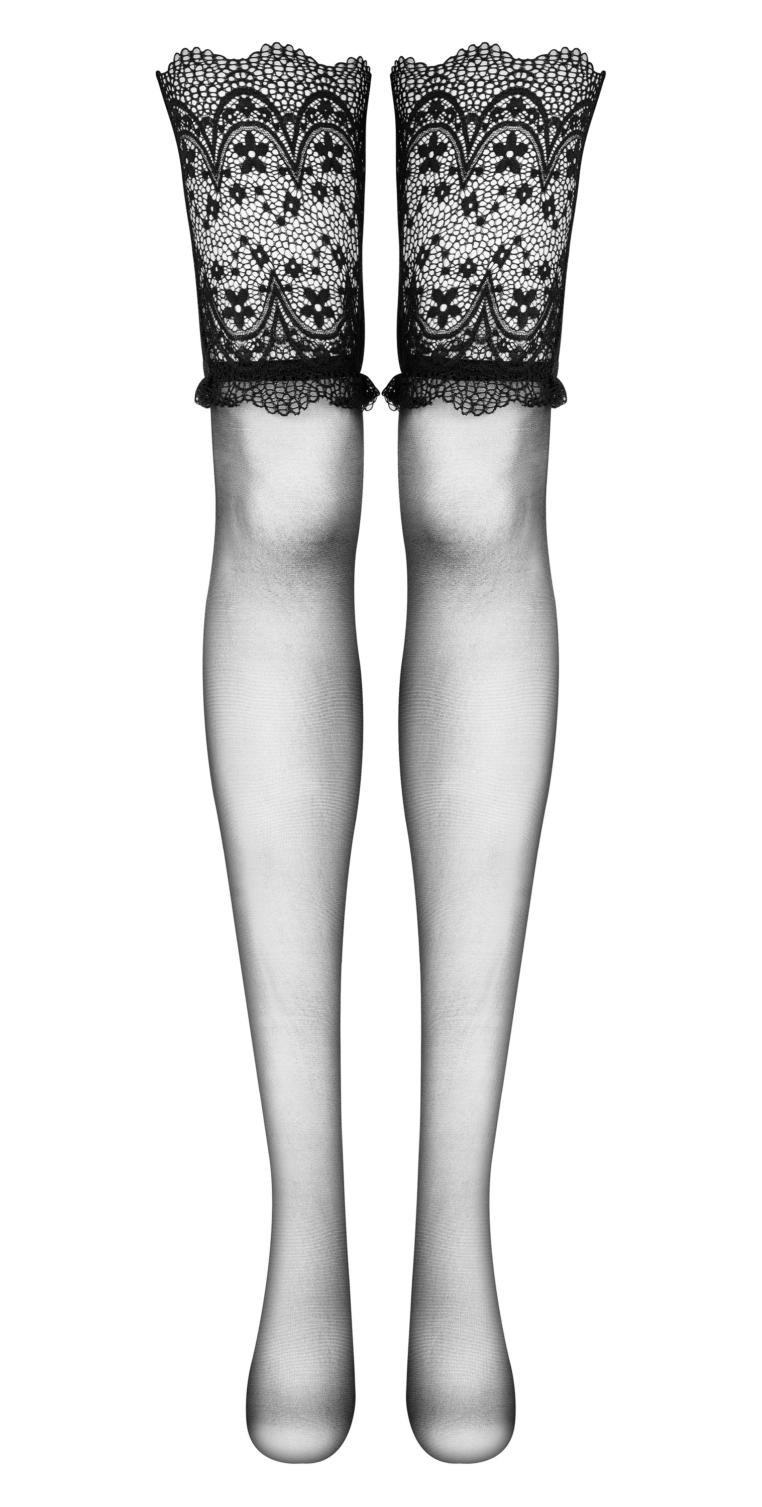 Pończochy do pasa Obsidian Stockings to kwintesencja elegancji i zmysłowości. Wykonane z delikatnego, transparentnego materiału, który zmysłowo otula nogi, połączone z wyrazistą koronką na górze, tworzą wyjątkowy efekt wizualny.
